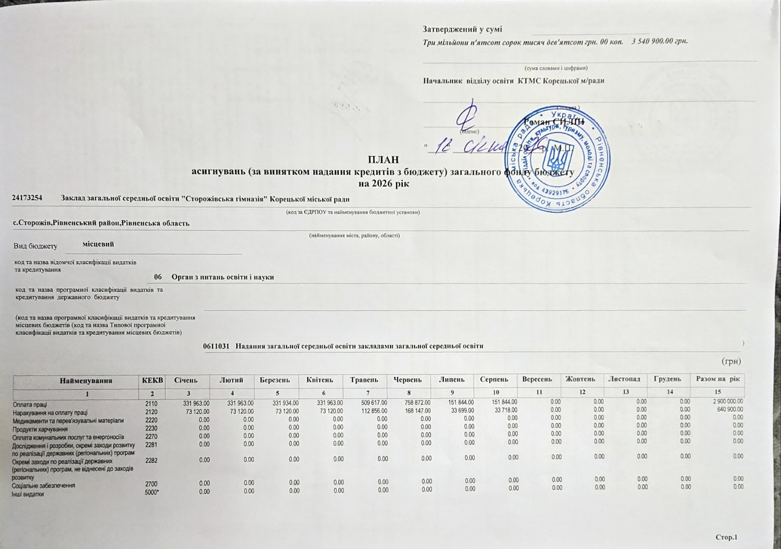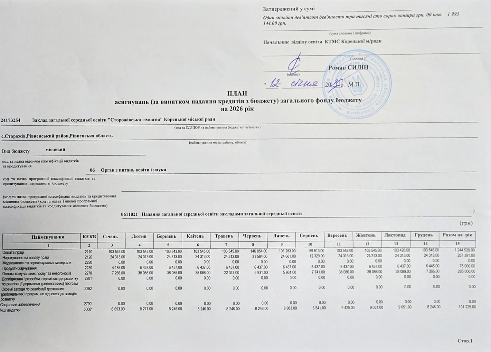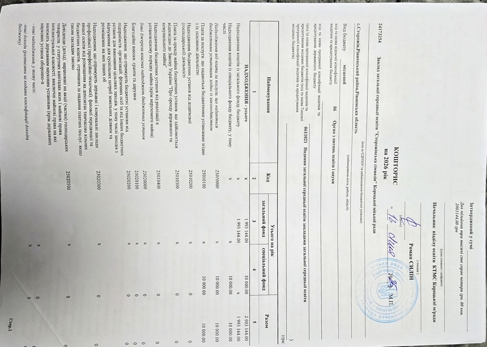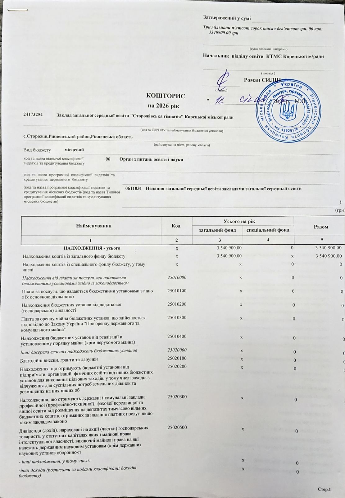 кошторис 2026р.